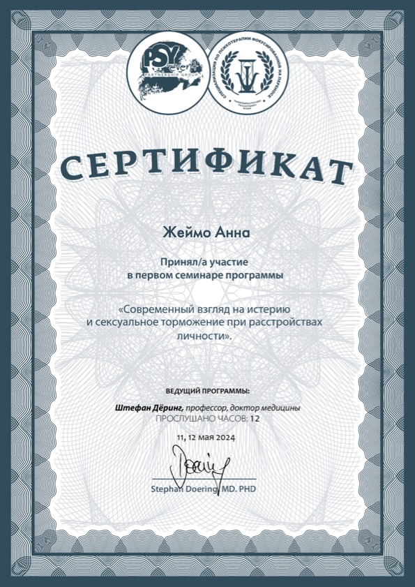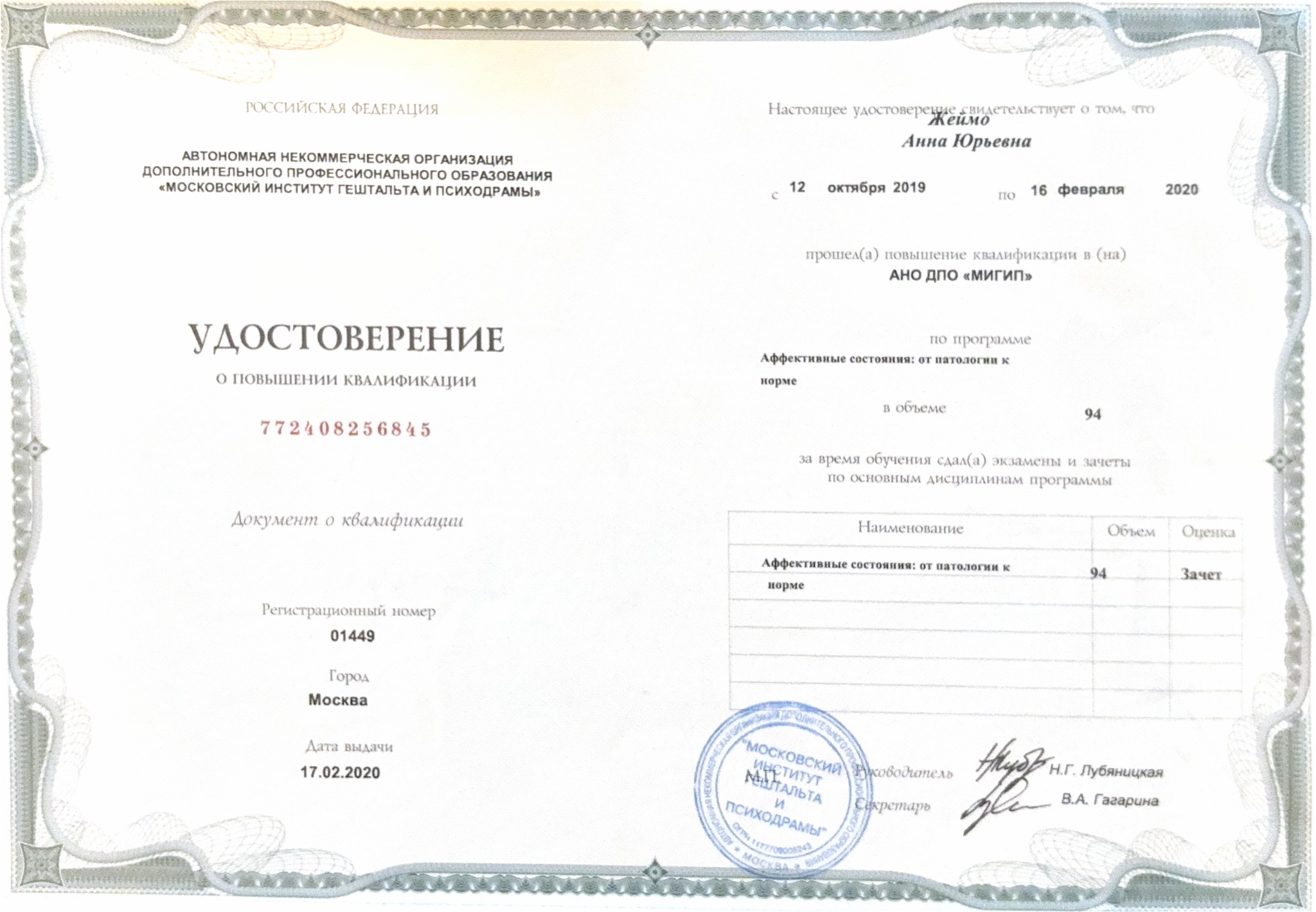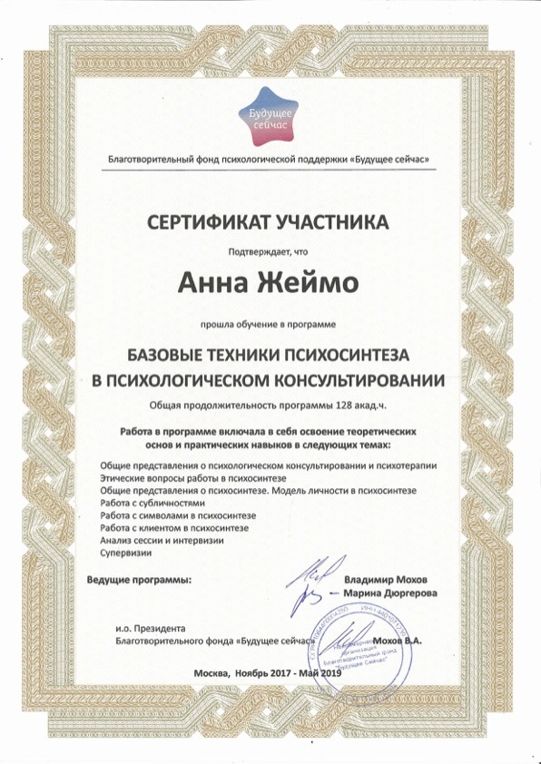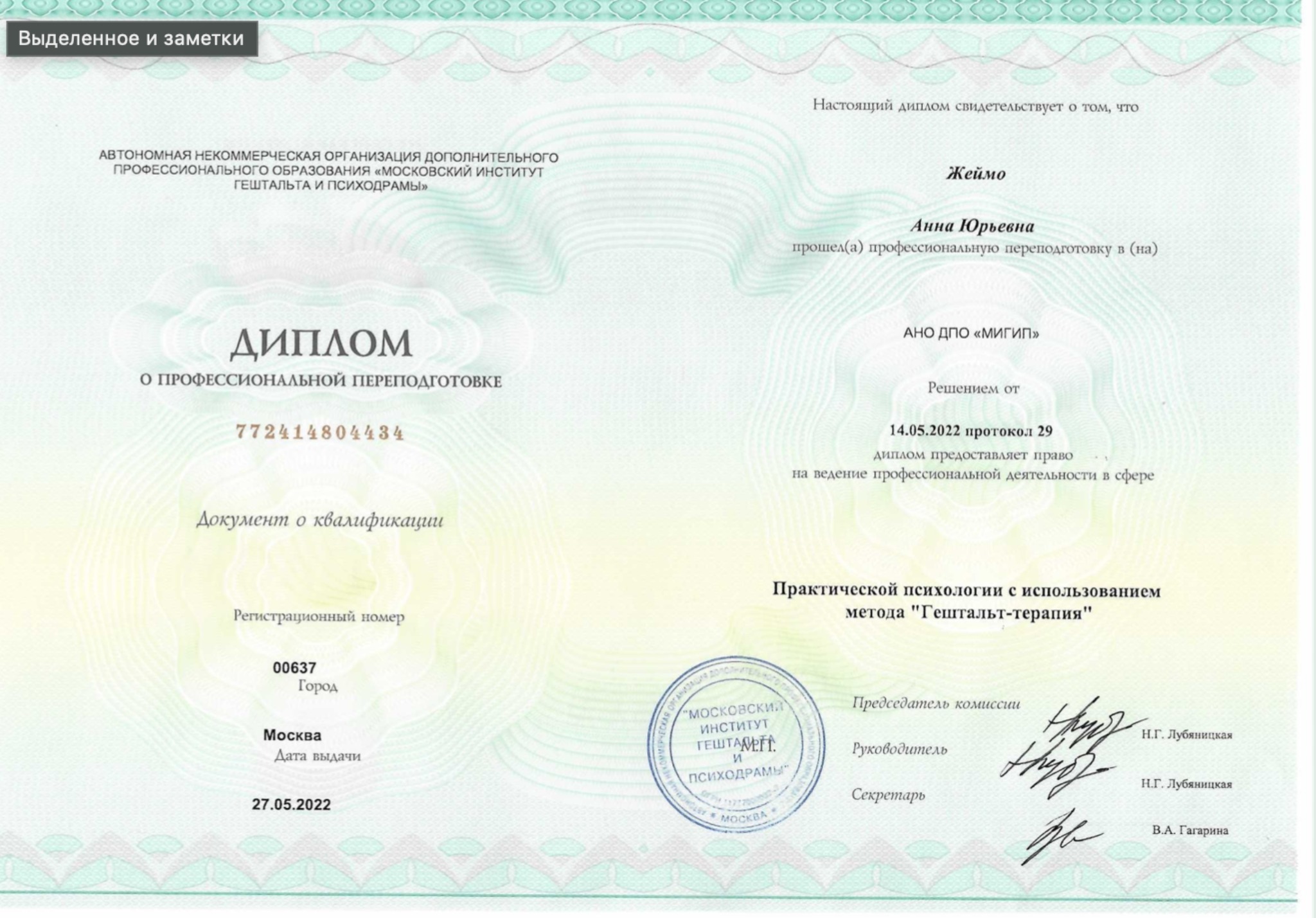 Гештальт-терапия (Московский институт гештальта и психодрамы, сертифицирована)